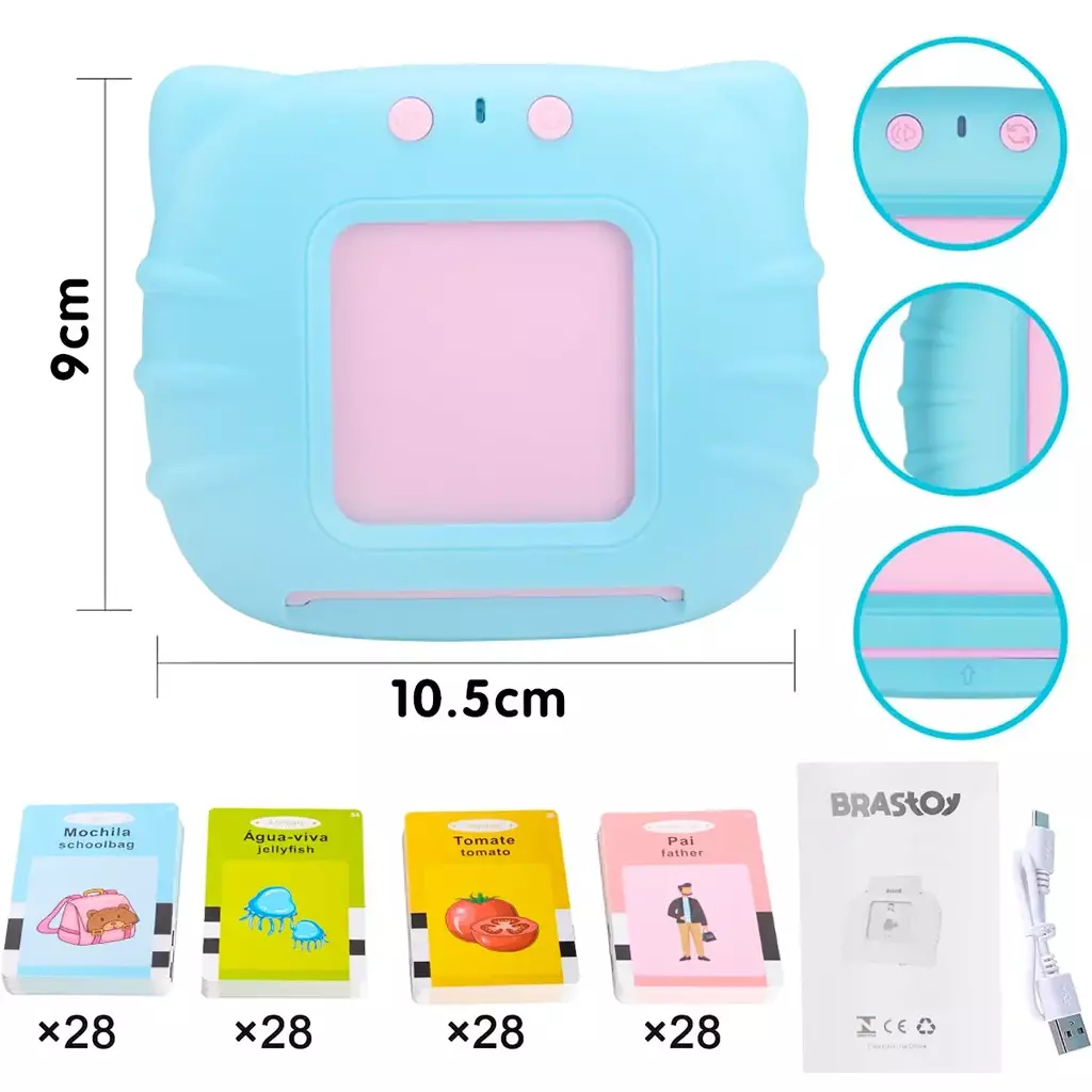 Com cartões coloridos e categorias variadas, seu filho explora animais, objetos, alimentos e muito mais. Uma forma leve e eficaz de aprender enquanto brinca, sem precisar de Wi-Fi ou aplicativos.